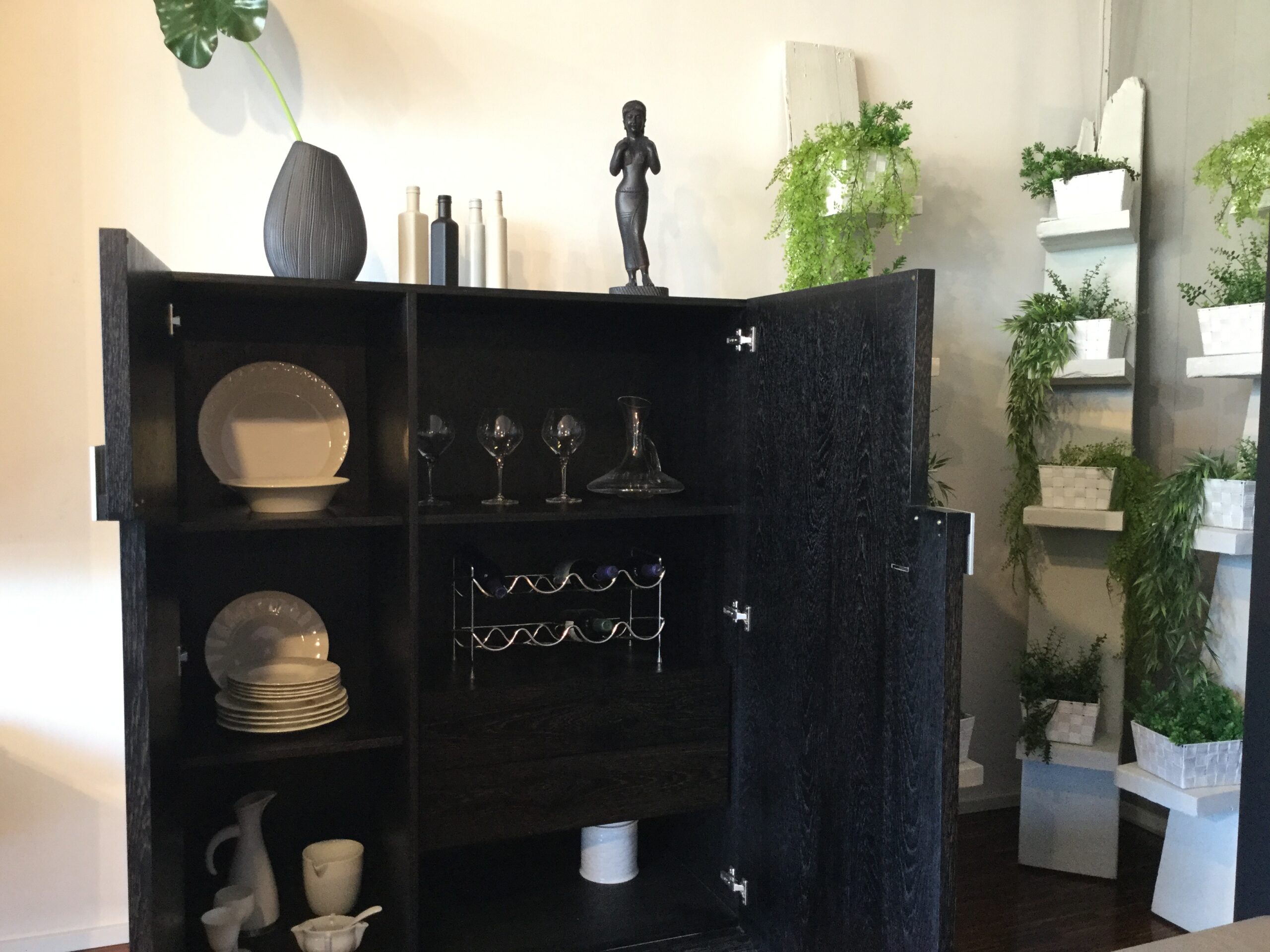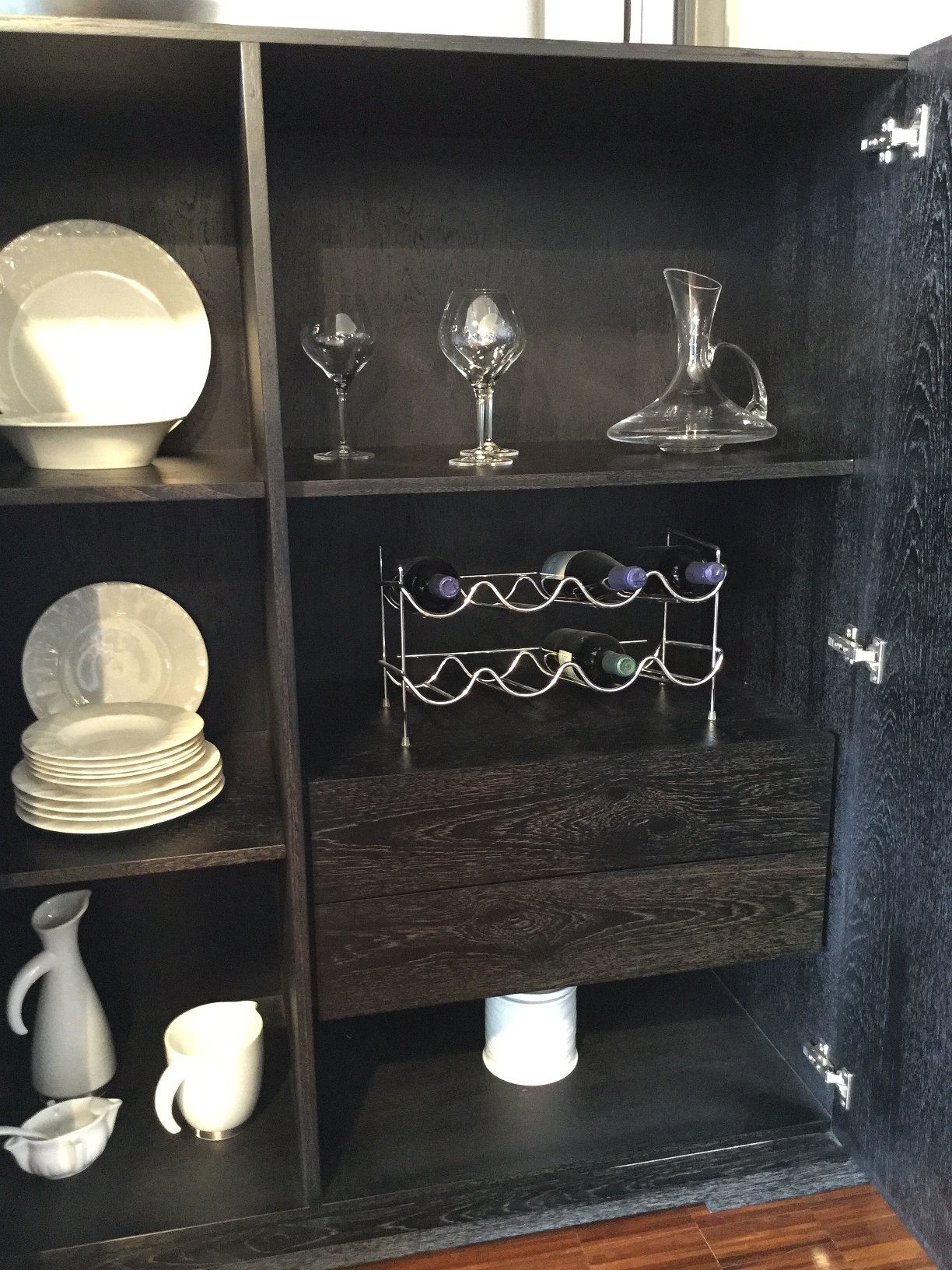 Dimensioni: 120x55x146 cm; n. 2 cassetti interni e ripiani spostabili.