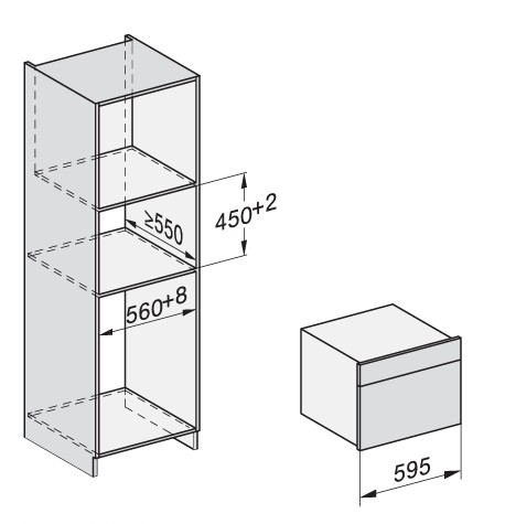 Dimensioni esterne 595 × 455 × 569 mm (L×H×P)