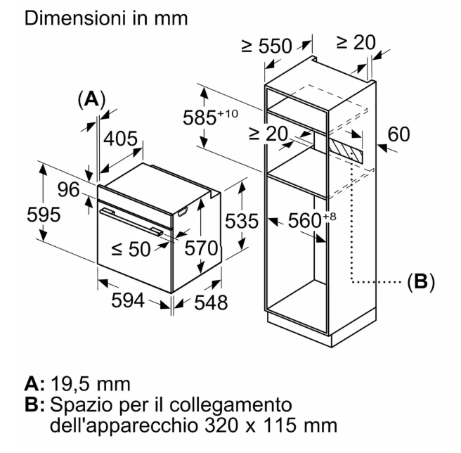 • Altezza del vano: 60 cm
